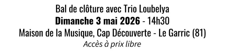 Bal en partenariat avec la Maison de la Musique, l’ADDA et le Conservatoire de Musique et Danse du Tarn. Le bal sera précédé par la restitution des élèves du stage animé par Guilhem Cavaillé.